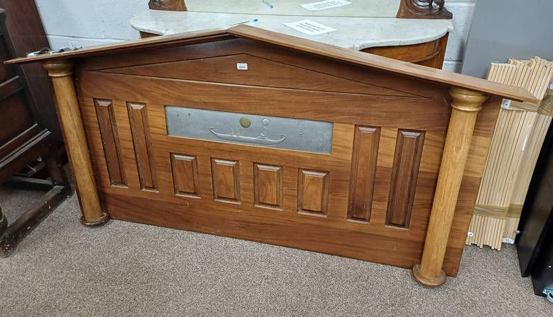 Eastern hardwood overmantle with columns & pewter insert depicting egyptian scene - stamped to back skatos with boat motif