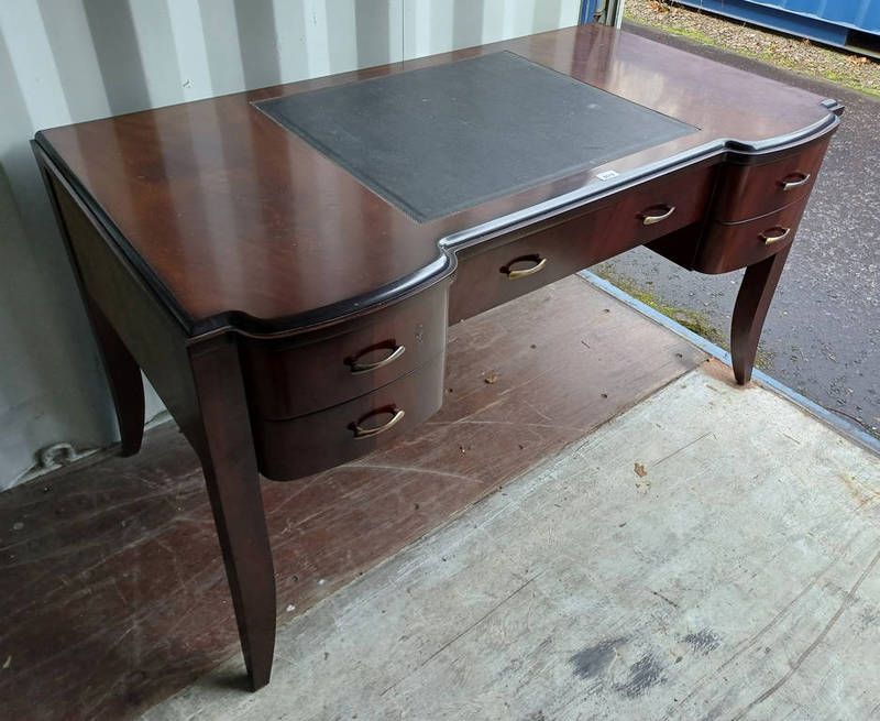 21st century mahogany desk of 5 drawers with leather inset top on shaped supports marked hurtado, valencia, spain, length 140cm