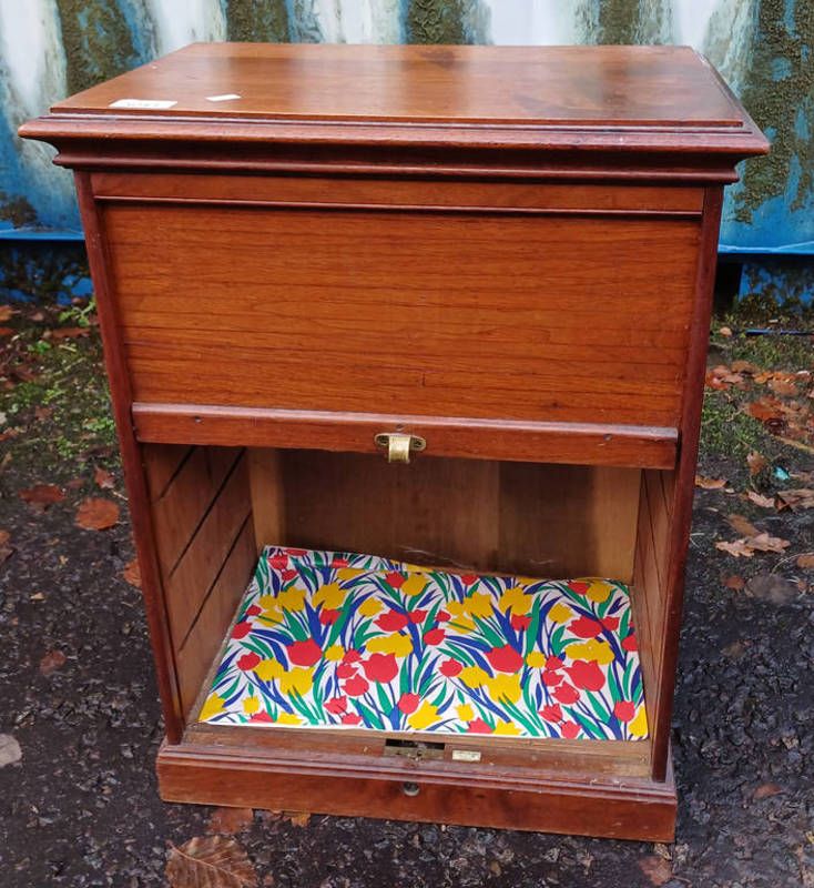 Early 20th century mahogany table top tambour cabinet on plinth base by henry stone & son, banbury, - 55 cm tall x 47 cm wide