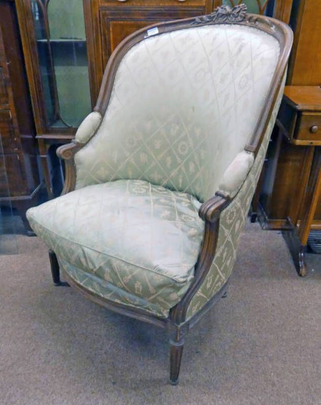 Late 19th century carved beechwood framed french armchair on reeded supports