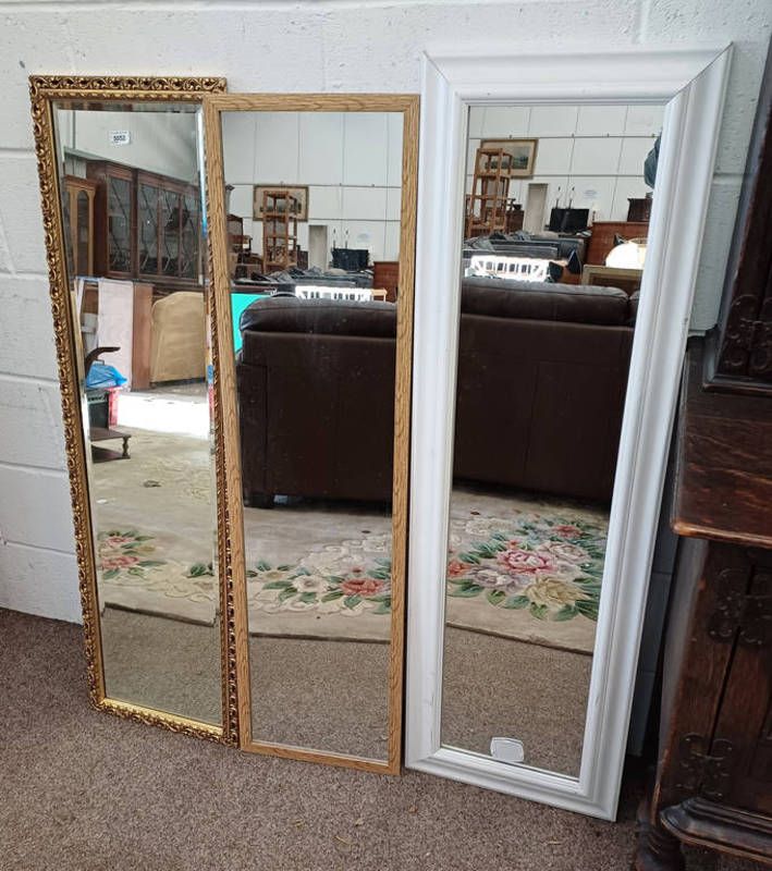Gilt framed rectangular mirror with beveled edge & 2 other mirrors