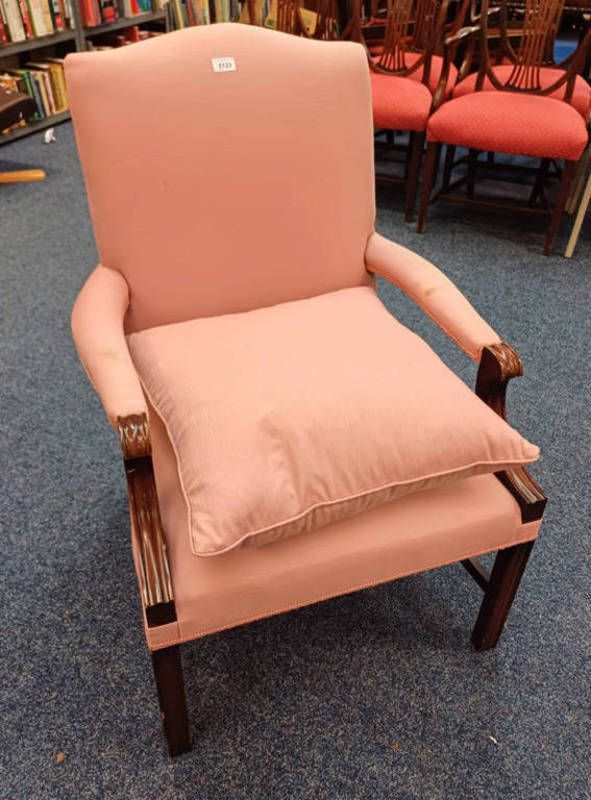 Early 20th century oak hall chair with barley twist decoration, 19th century mahogany open armchair,...
