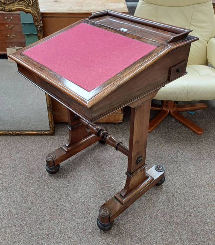 19th century rosewood davenport with lift-up writing slope opening to 4 drawer interior & short drawer to right side - 86 cm tall