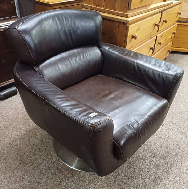 Violino brown leather swivel armchair