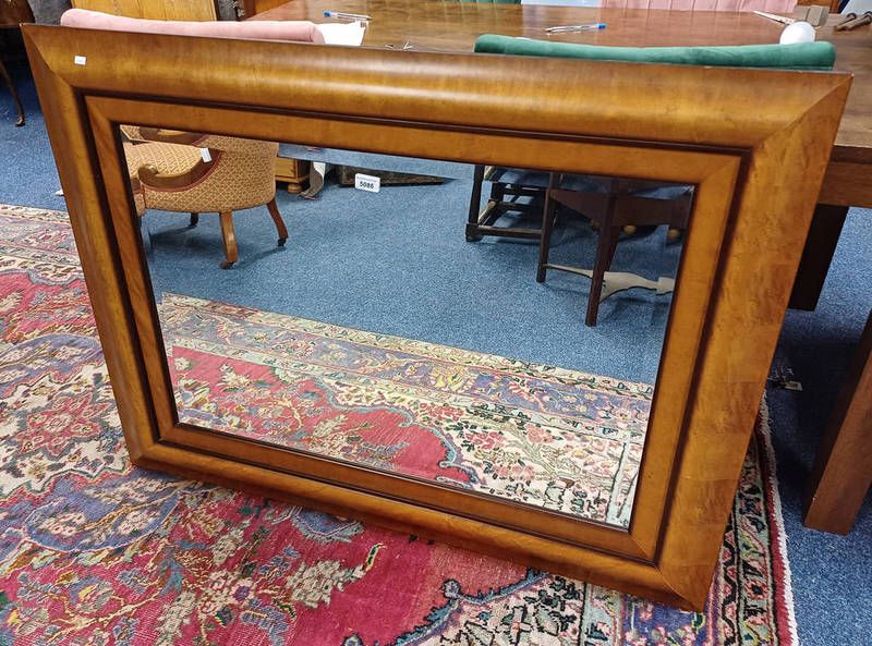 Rectangular mirror with beveled edge and burr walnut effect frame - glass dimensions: 60 cm x 92 cm