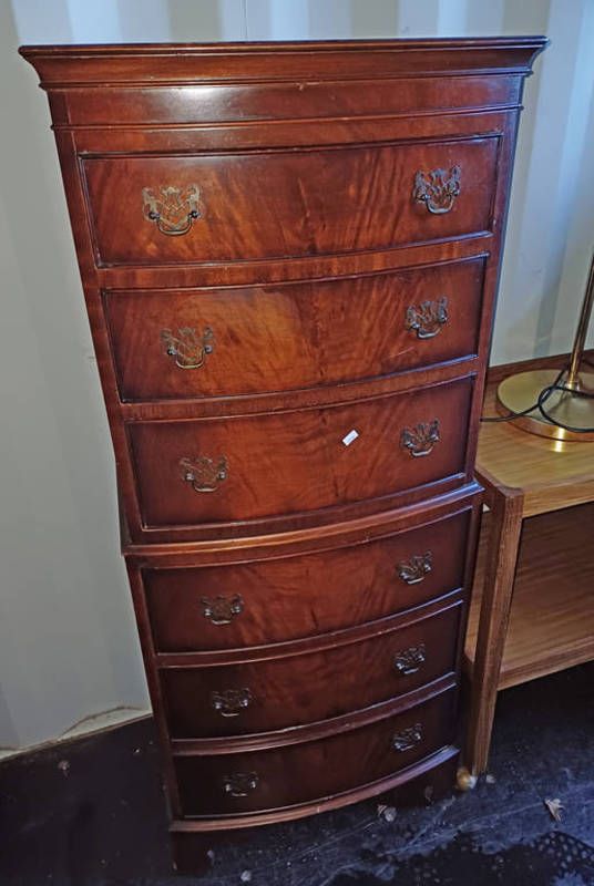 20th century mahogany bow front chest of 6 drawers - 130 cm tall