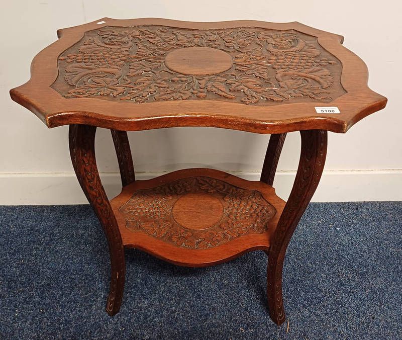 Early 20th century oak table with shaped top & carved decoration in the arts & crafts style