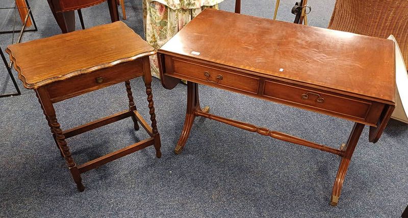 Late 20th century mahogany sofa table with 2 drawers & oak side table with single drawer