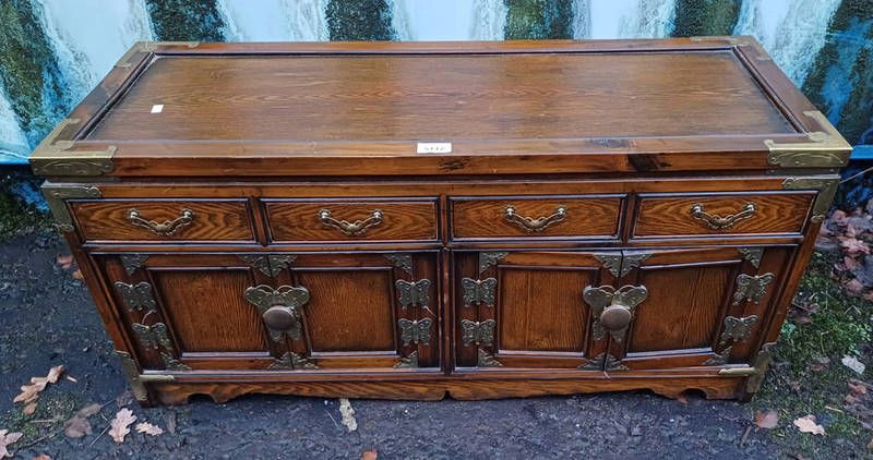 Eastern low cabinet with 4 drawers over 4 panel doors with decorative metal fittings - 43 cm tall x 91 cm wide