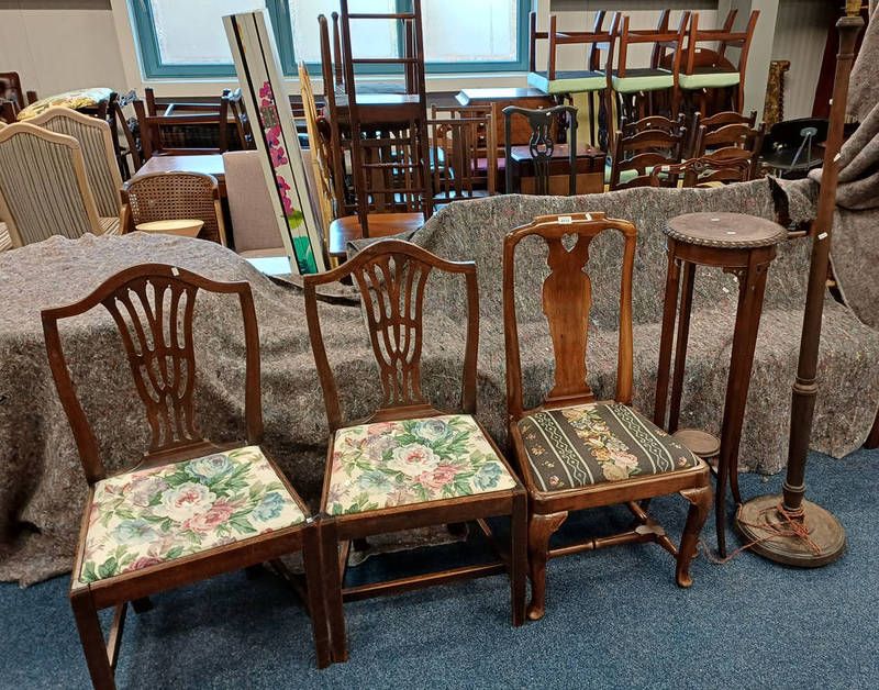 19th century mahogany dining chair, mahogany pot stand, etc