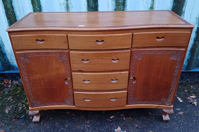 Eastern hardwood sideboard with shaped front, 6 drawers & 2 panel doors - 127 cm long