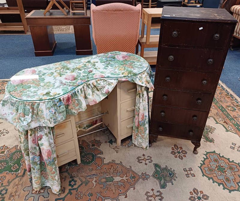 20th century mahogany 6 drawer chest on short queen-anne supports & dressing table