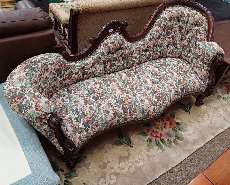19th century style carved mahogany framed chaise longue on cabriole supports