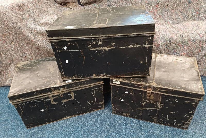 19th century oak metal bound silver chest with twin carrying handles and brass plaque to...