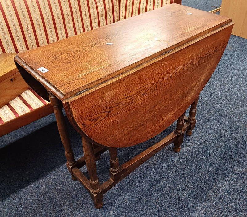 Oak drop leaf table on turned supports