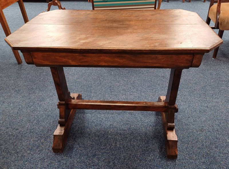 Late 19th or early 20th century walnut library table with single drawer, 92cm long
