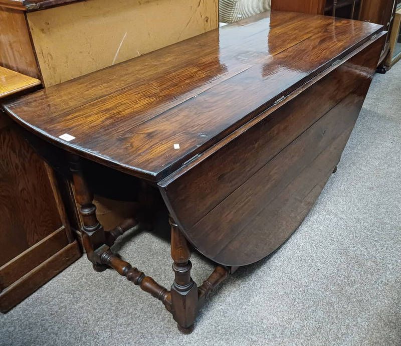 19th century style oak drop leaf dining table with single drawer on turned supports - 156 cm long
