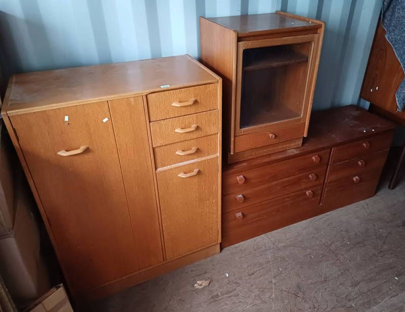 Teak wardrobe with 3 drawers & 2 panel doors, teak 6 drawer chest etc. 120 cm tall x 87 cm wide
