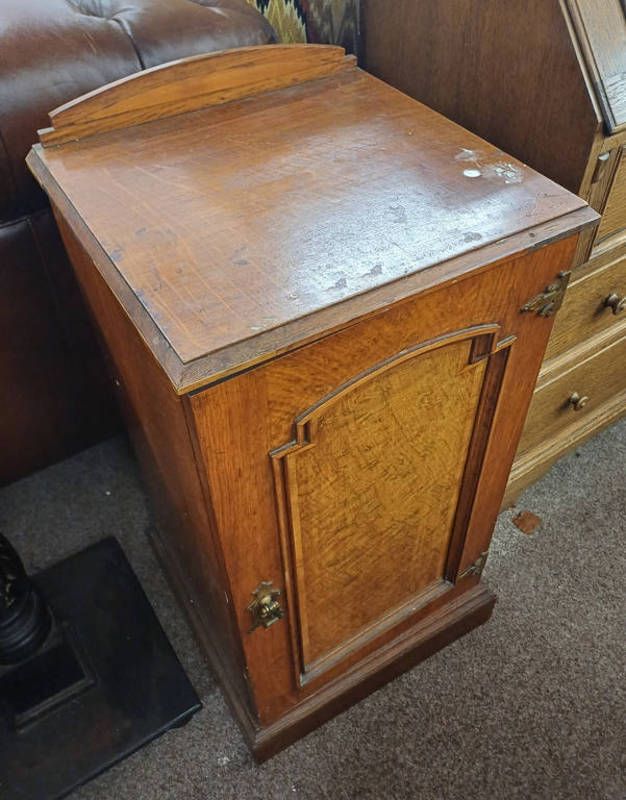 Late 19th century or early 20th century oak & walnut single door bedside cabinet on plinth base - 81 cm tall