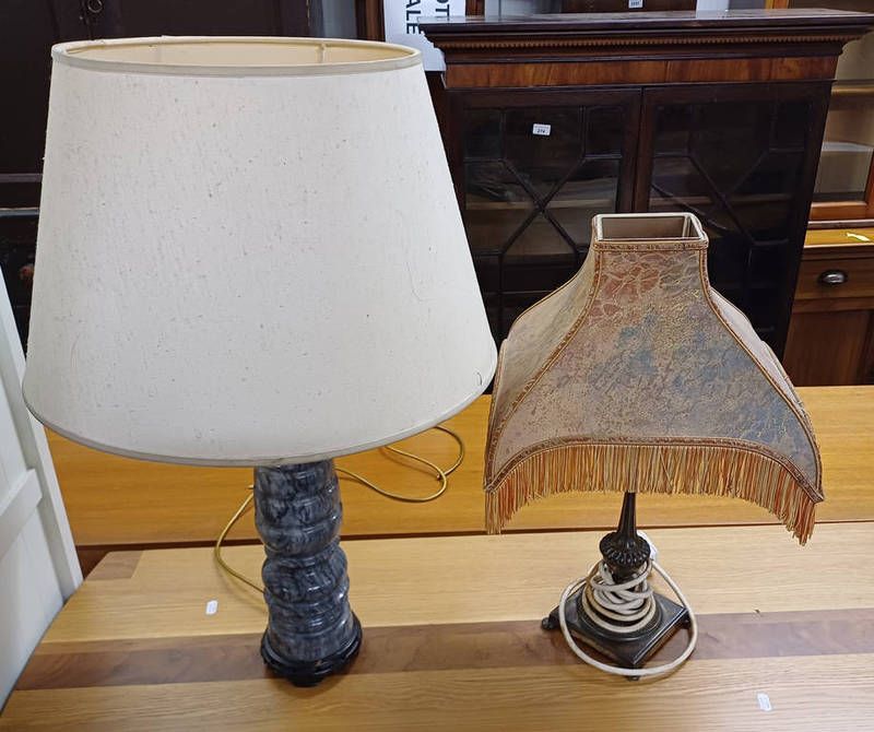 Decorative marble table lamp on eastern hardwood base & metal table lamp