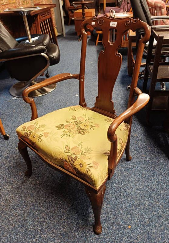 19th century mahogany open armchair on queen anne supports