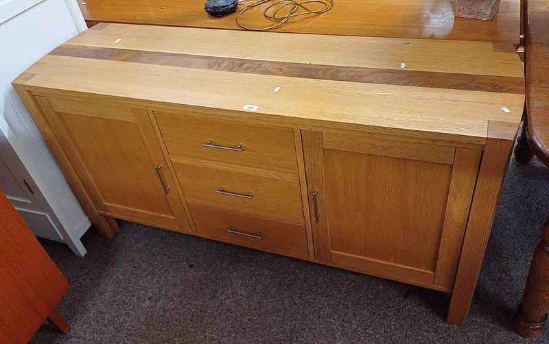 Modern oak sideboard with 3 centrally set drawers flanked by 2 panel doors - 148 cm long