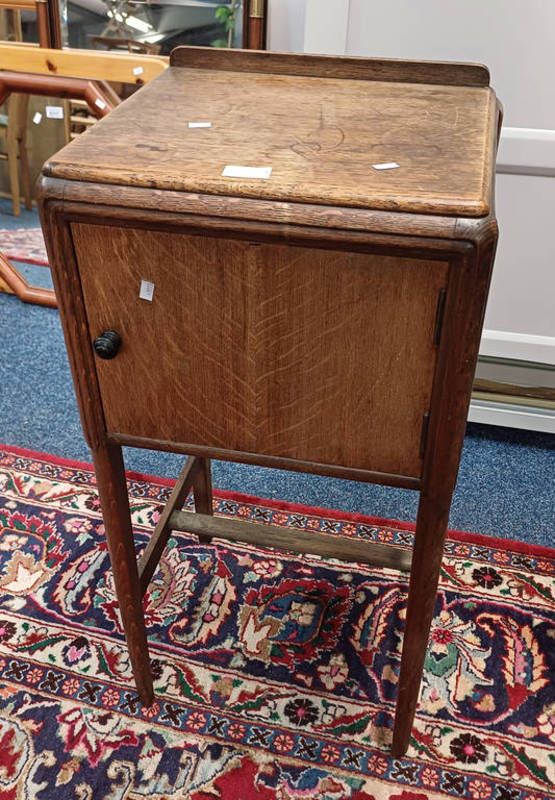 Early 20th century oak single door bedside cabinet attributed to bath cabinet makers - 79 cm tall