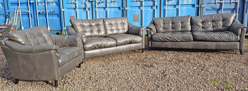 Overstuffed leather 3 piece living room suite - 2 settees & one armchair