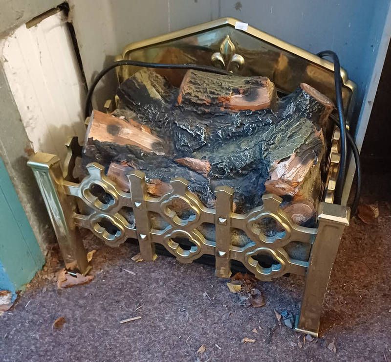Arts & crafts fire place, the copper hearth with oak surround with inlaid dutch child...