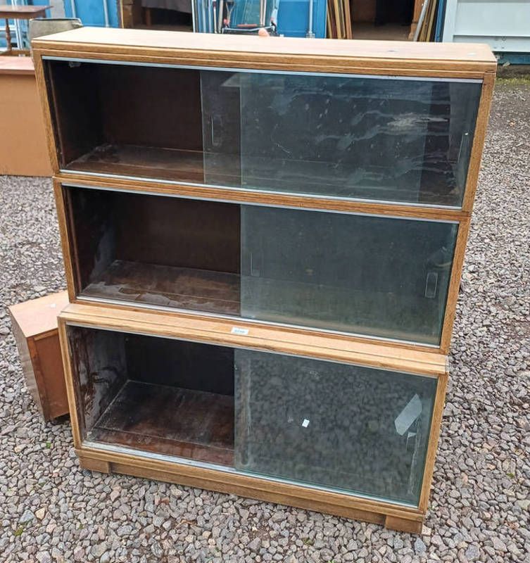 20th century oak bookcase with sliding glass doors by minty ltd, oxford