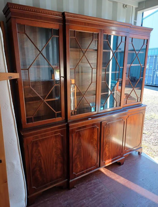 19th century mahogany dresser with mirror panel back flanked by 2 astragal glass panel doors...