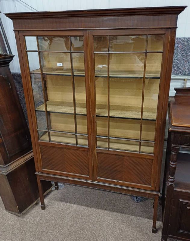 20th century mahogany display cabinet with 2 glazed panel doors on square tapered supports - 172 cm tall x 113 cm wide