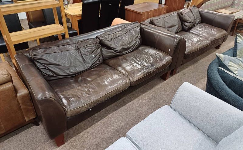 Overstuffed leather 3 piece living room suite - 2 settees & one armchair