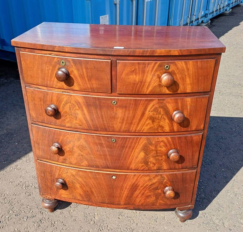 19th century mahogany bow front chest of 2 short over 3 long drawers on turned supports