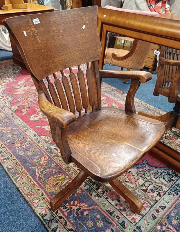 Early 20th century oak hall chair with barley twist decoration, 19th century mahogany open armchair,...