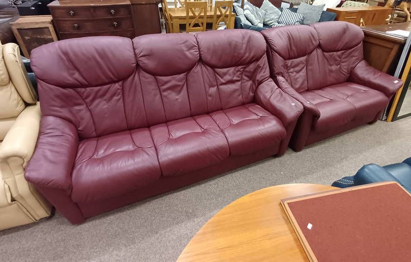 Overstuffed leather 3 piece living room suite - 2 settees & one armchair