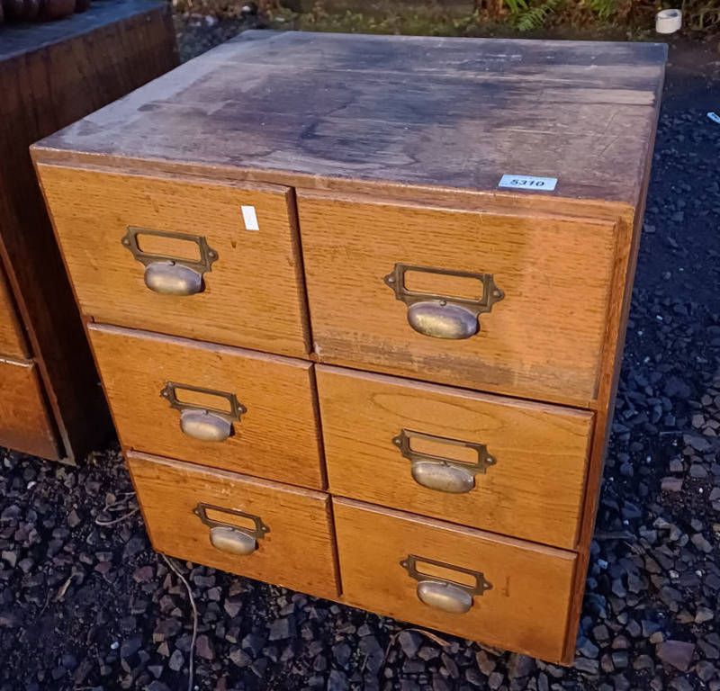 Early 20th century oak 6 drawer table top filing chest - 52 cm tall x 50 cm wide