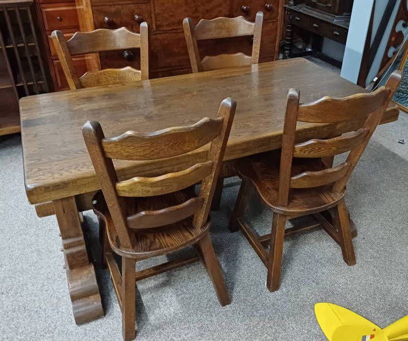 Oak refectory style table & set of 4 oak ladder back chairs. table 160 cm long