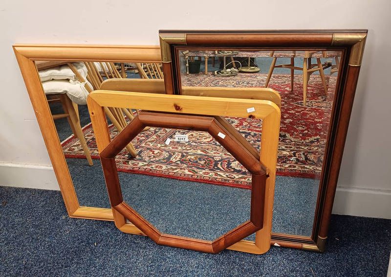 Hardwood framed mirror with brass fittings & 3 other mirrors