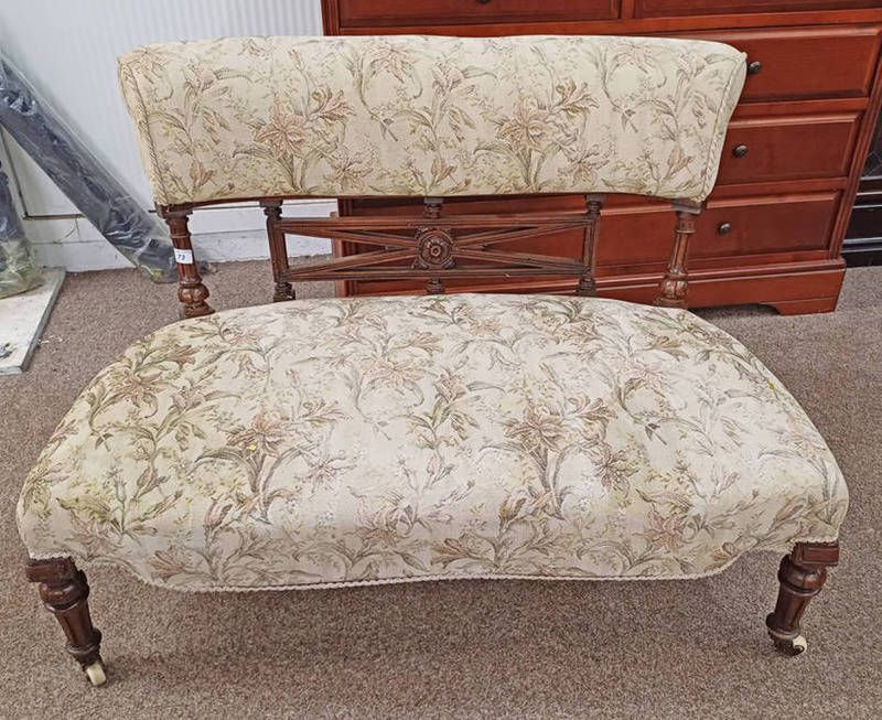19th century mahogany framed 2 seater low settee on reeded supports.