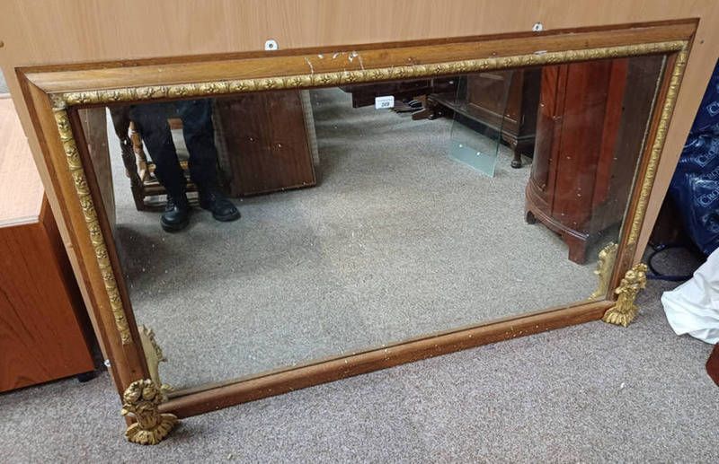 19th century oak framed overmantle mirror with floral gilt carved decoration & border - glass dimensions ; 70 cm x 126 cm