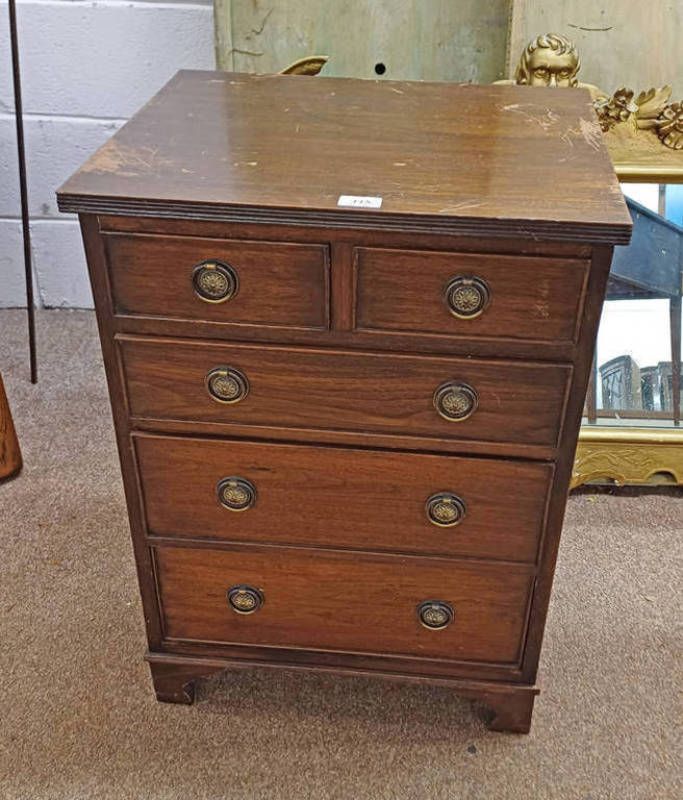20th century mahogany chest of 2 short over 3 long graduated drawers on bracket supports. 73 cm tall x 51 cm wide