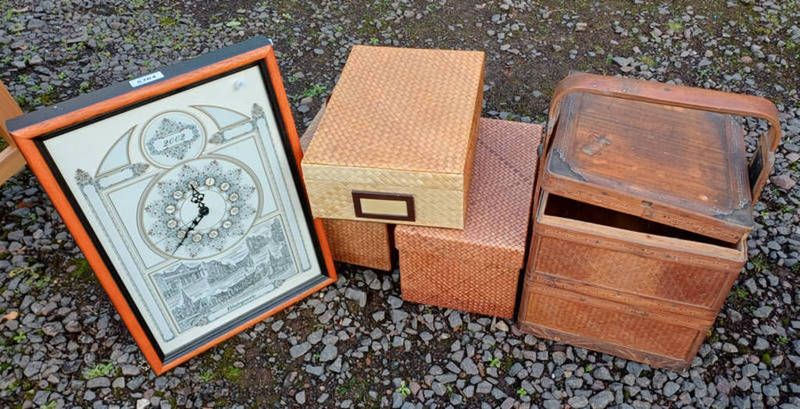 Limited edition wall clock with decorative motifs & 18-carat gold inlay signed blairgowrie, chinese 2 tiered wedding basket, etc.