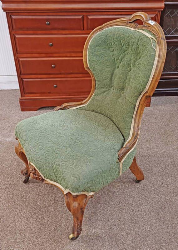 19th century walnut framed button back ladies chair on cabriole supports