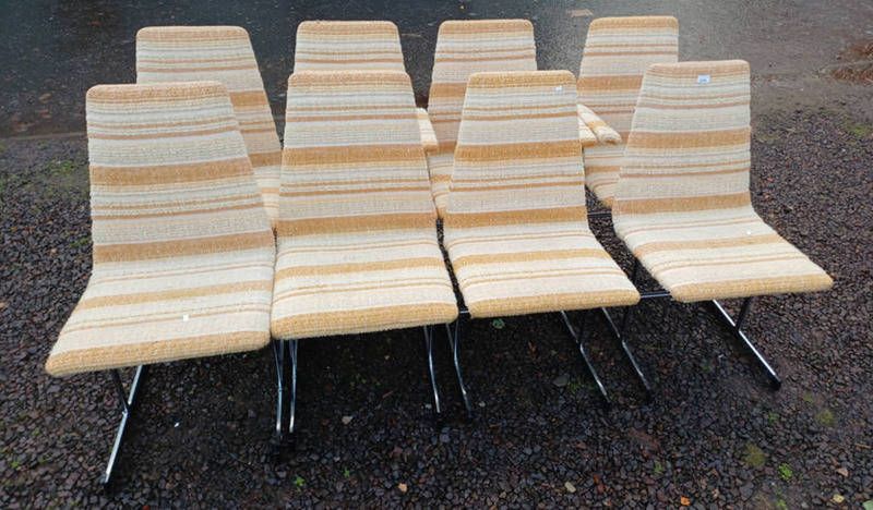 Set of 8 pieff lisse style chrome framed cantilever dining chairs including 2 armchairs