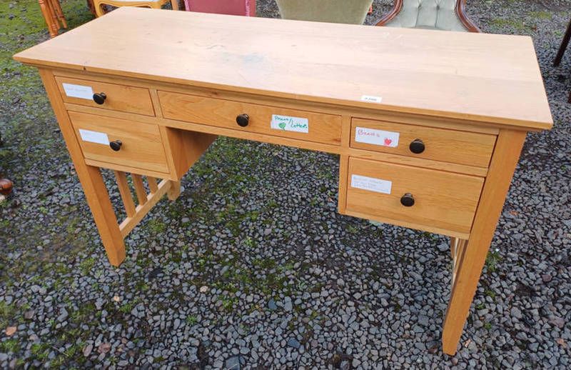 Modern oak knee-hole desk with 5 drawers - 120 cm wide