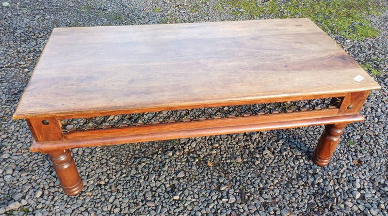 Pine open bookcase, pair of decorative table lamps, glass topped coffee table, etc.