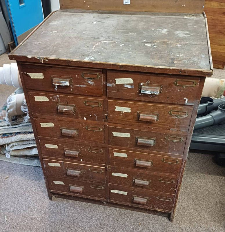 Early 20th century pine multi drawer desk - 117 cm tall x 86 cm wide