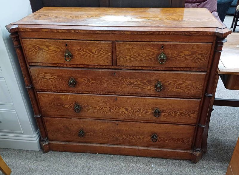 19th century pine chest of 2 short over 3 long drawers on plinth base - 104 cm tall x 130 cm wide