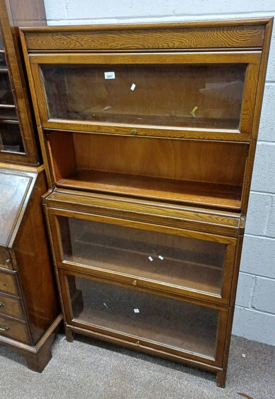 Early 20th century globe - wernikie oak sectional bookcase with 2 glazed panel doors over...